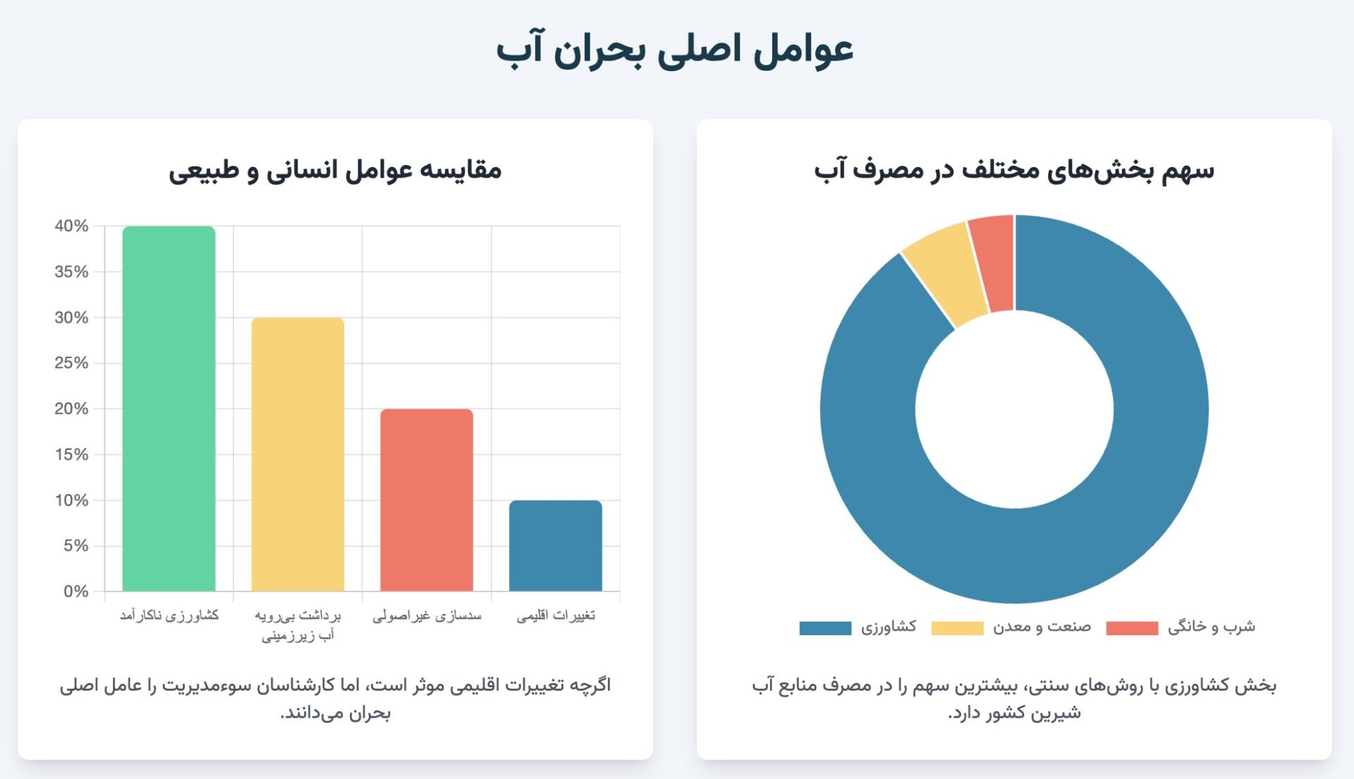 بحران آب در ایران یک چالش چندبعدی است که تنها با اقدامات مقطعی و سازه‌ای قابل حل نیست. این بحران نه تنها یک تهدید زیست‌محیطی، بلکه یک بحران اقتصادی، اجتماعی و سیاسی است که آینده کشور را به شدت تحت تأثیر قرار می‌دهد.
