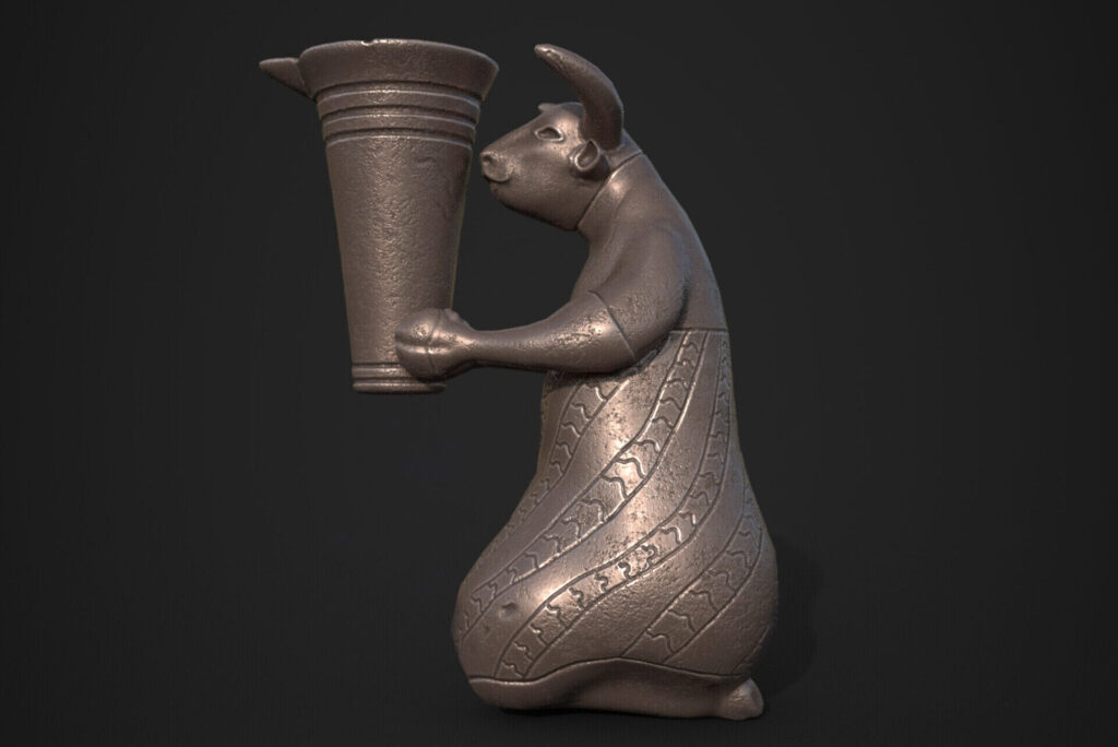 مجسمهای نقرهای به شکل موجودی ترکیبی، که قدمت آن به حدود ۵ هزار سال پیش میرسد و در جنوب غربی ایران کشف شده است، تصویری از یک گاو زانو زده را به نمایش میگذارد که بدنی شبیه به انسان دارد. کارکرد دقیق این اثر باستانی همچنان در هالهای از ابهام قرار دارد، اما به نظر میرسد که در یک مراسم آیینی مورد استفاده قرار میگرفته است.